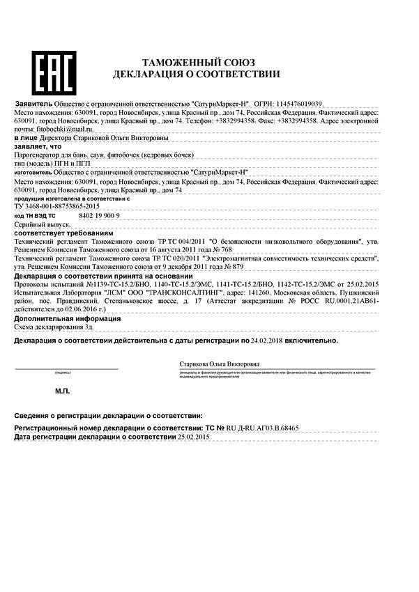 • Сертификат и Декларация Европейского союза